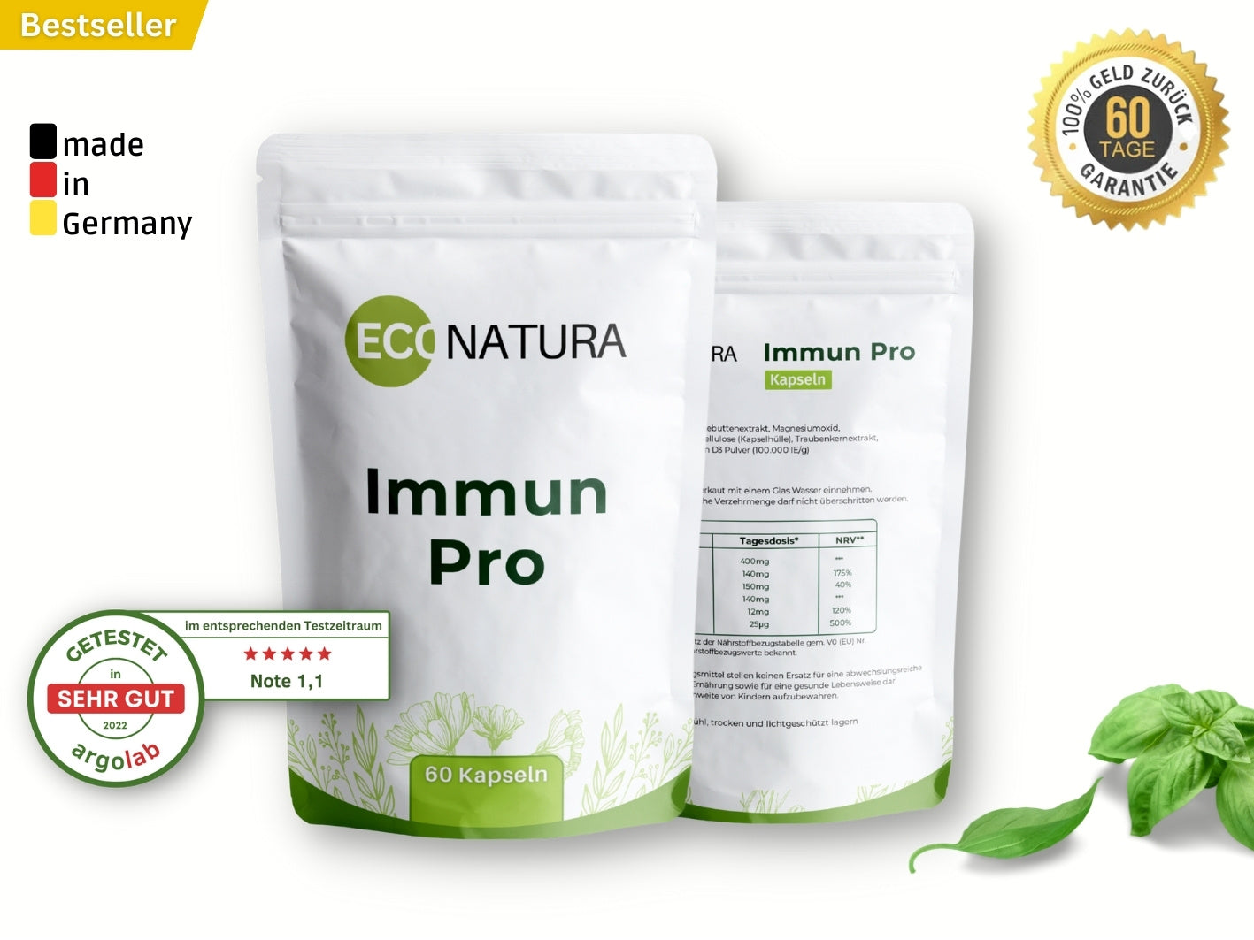 Des Weiteren erfolgt die Produktion von Immun Pro in Deutschland. Damit helfen wir regionale Arbeitsplätze zu sichern und können die Produktion zu 100 % kontrollieren.